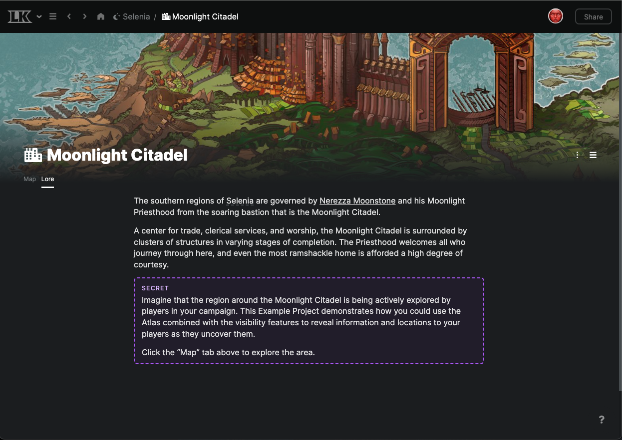 The latest update brings a new, dramatic way to customize the atmosphere of your LegendKeeper pages: Banners! You can now place decorative, panoramic images at the top of your text pages.