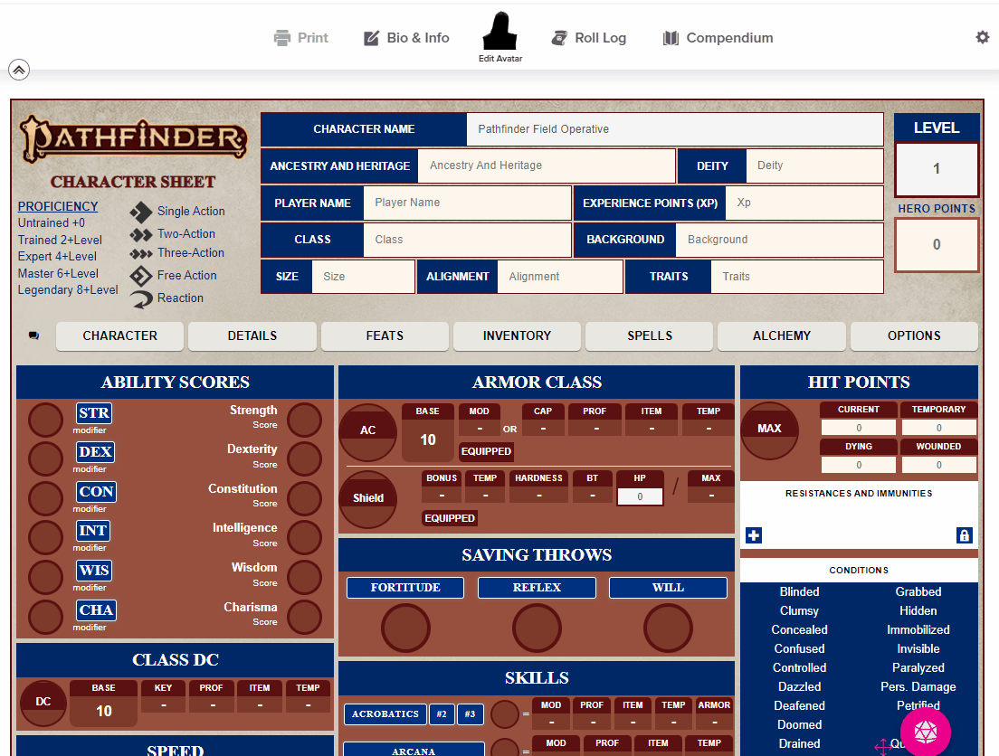 The Roll20 Characterbuilder demonstrates the improved Pathfinder 2E PC character-building process using compendium drag-n-drop.